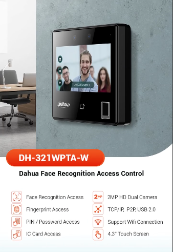 Face Recognition Access Control & Time Attendance – Dual-Lens 2MP, Wi-Fi, Touch Screen