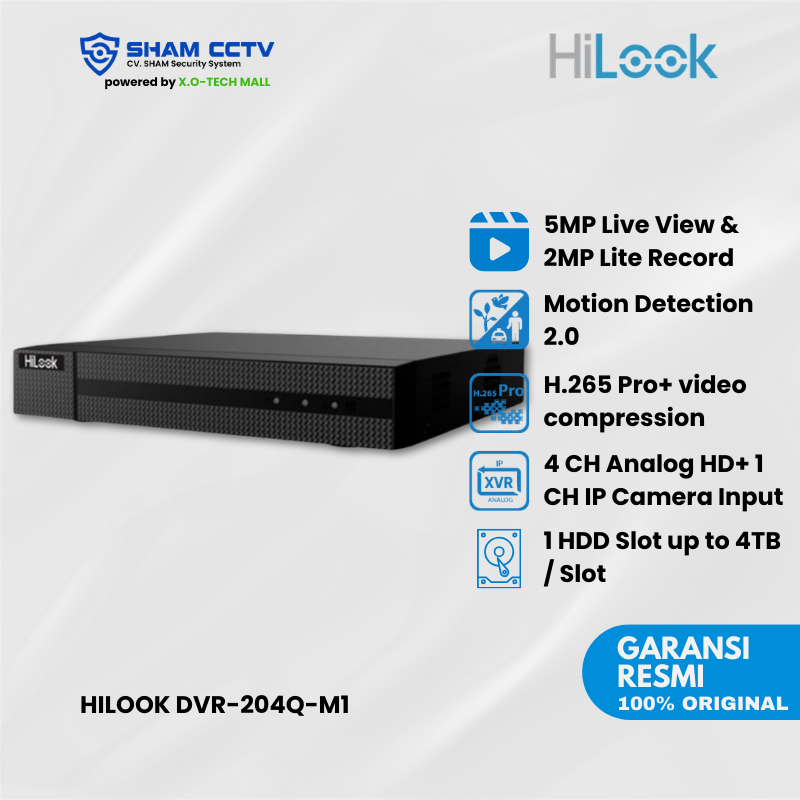 HiLook DVR-204Q-M1 adalah DVR 4 Channel yang mendukung resolusi hingga 5MP Lite