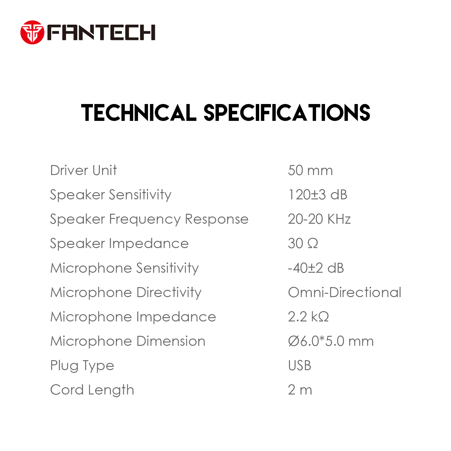 Speaker | Driver: 50mm Impedansi: 32Ω ±15% Sensitivitas: 109dB ±3dB Respon frekuensi: 20Hz – 20kHz Tipe suara: Virtual 7.1 Surround |