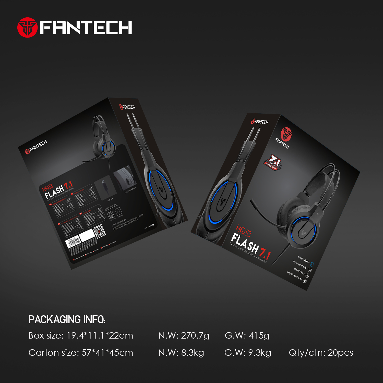 Dalam Kotak | Fantech FLASH 7.1 HQ53 Gaming Headset (Black) ×1 Quick Installation Guide ×1 Software download link (driver 7.1 surround) |