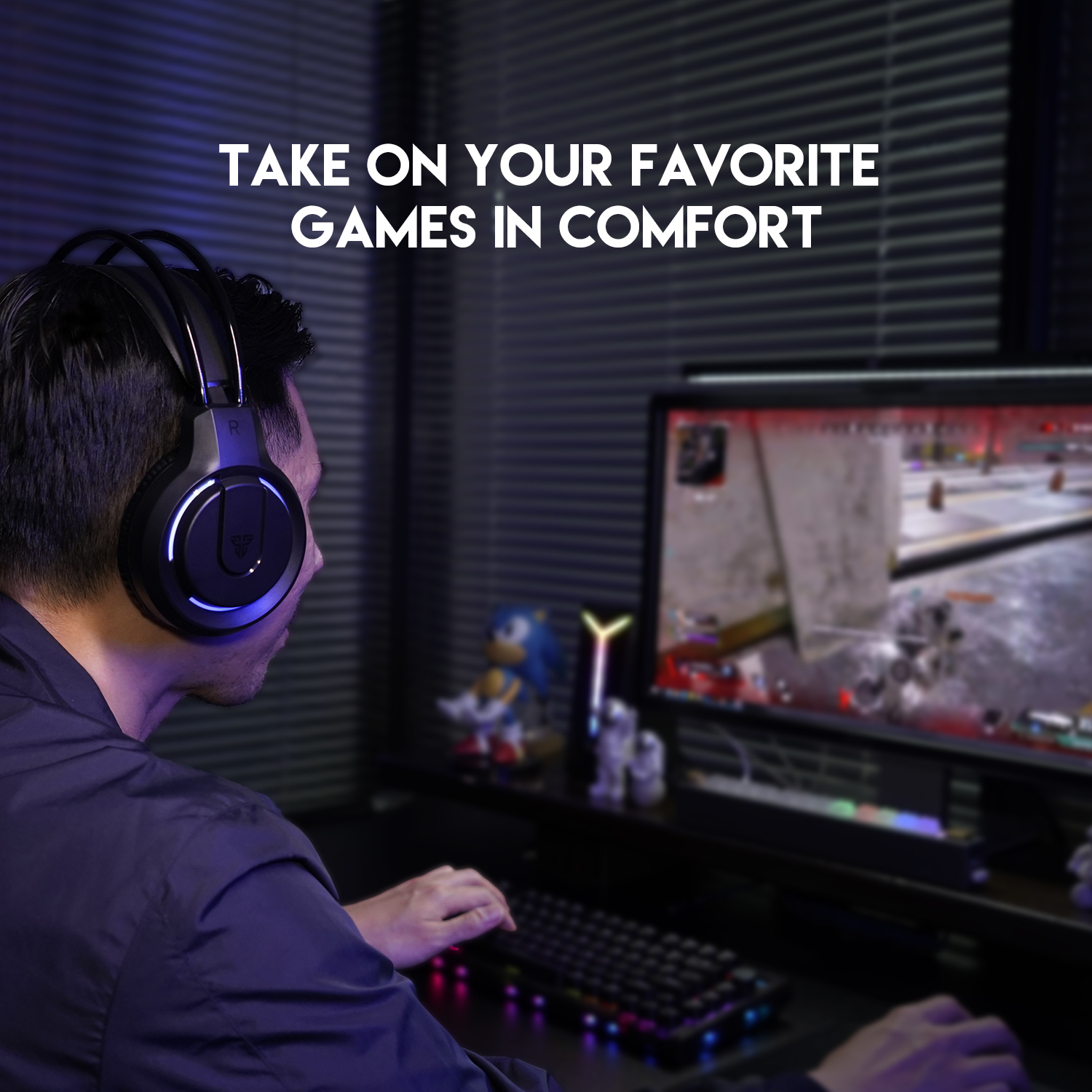 Fitur | Virtual 7.1 Surround Sound RGB Lighting Effect Adjustable Headband & Soft Memory Foam Earcup Desain ergonomis untuk sesi gaming panjang |