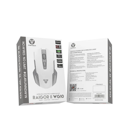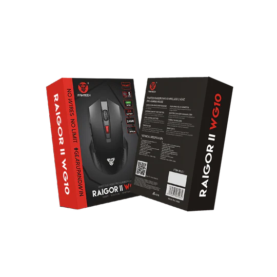 Dalam Kotak | Fantech RAIGOR II WG10 Wireless Mouse (Ruby Red) ×1 Nano USB Receiver ×1 Quick Installation Guide ×1 |