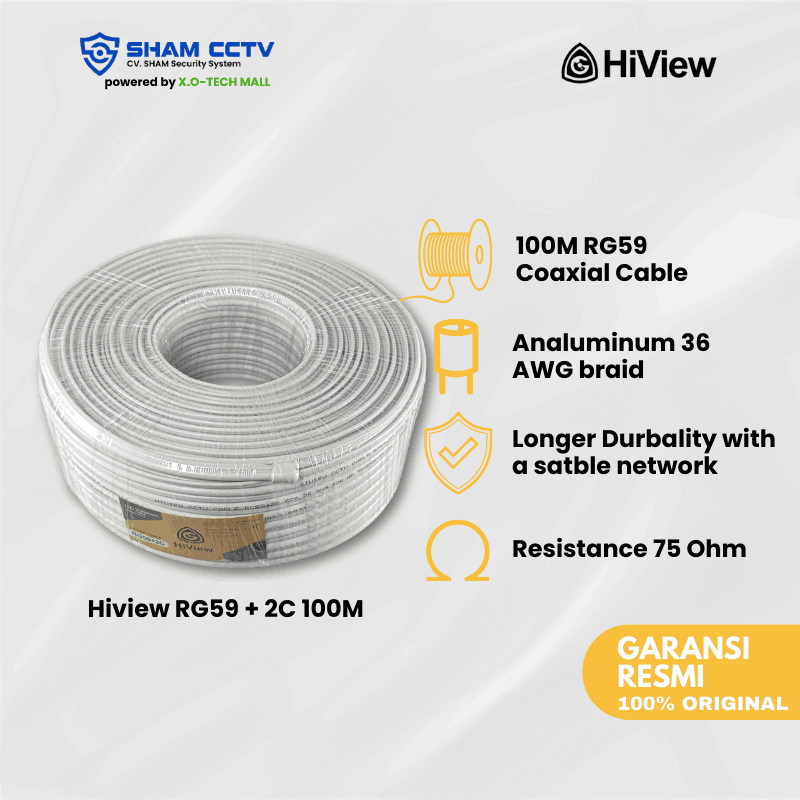 | Tipe & Panjang | RG59 + Power (Siamese Cable) • 100 meter/gulungan |