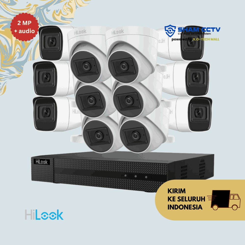 - 12x Kamera I/O Hilook 2MP Audio Infrared – kamera Full HD 1080p dengan mikrofon internal