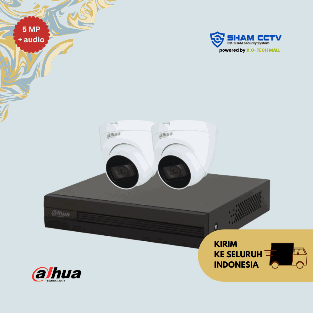 Paket pengawasan beresolusi tinggi dengan 2 kamera Dahua 5 Megapixel berfitur audio built-in dan infrared night vision. Cocok untuk pengawasan rumah, toko, atau kantor kecil dengan hasil video tajam dan suara jernih, siang maupun malam.