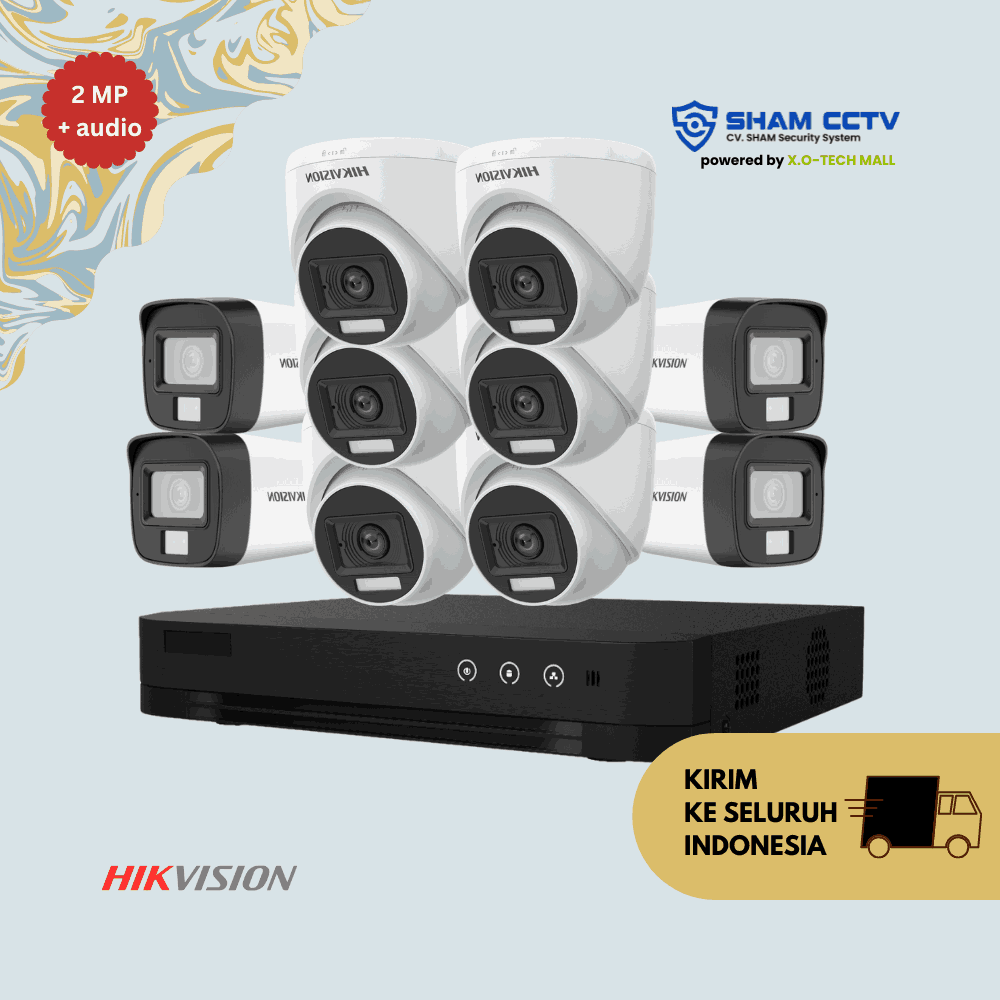 - 10x Kamera Hikvision 2MP Audio – resolusi Full HD 1080p dengan mikrofon internal