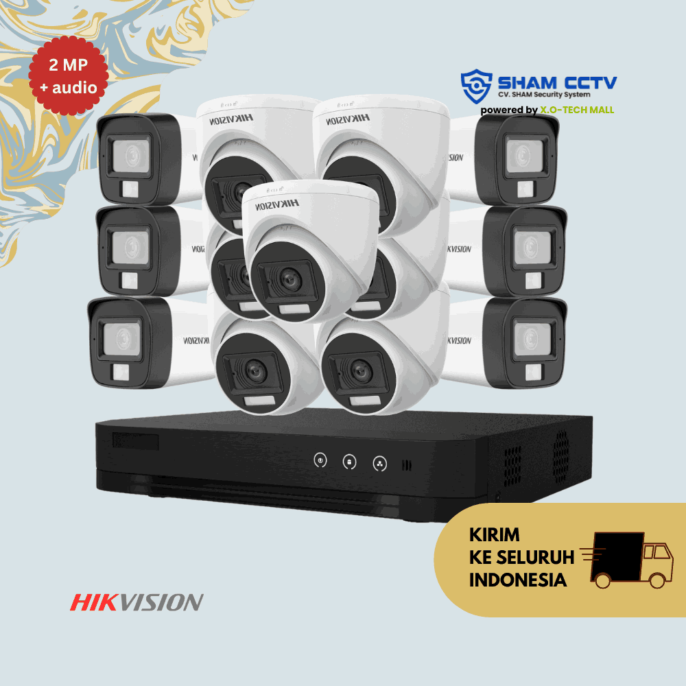 - 13x Kamera Hikvision 2MP Audio – resolusi Full HD 1080p dengan mikrofon internal