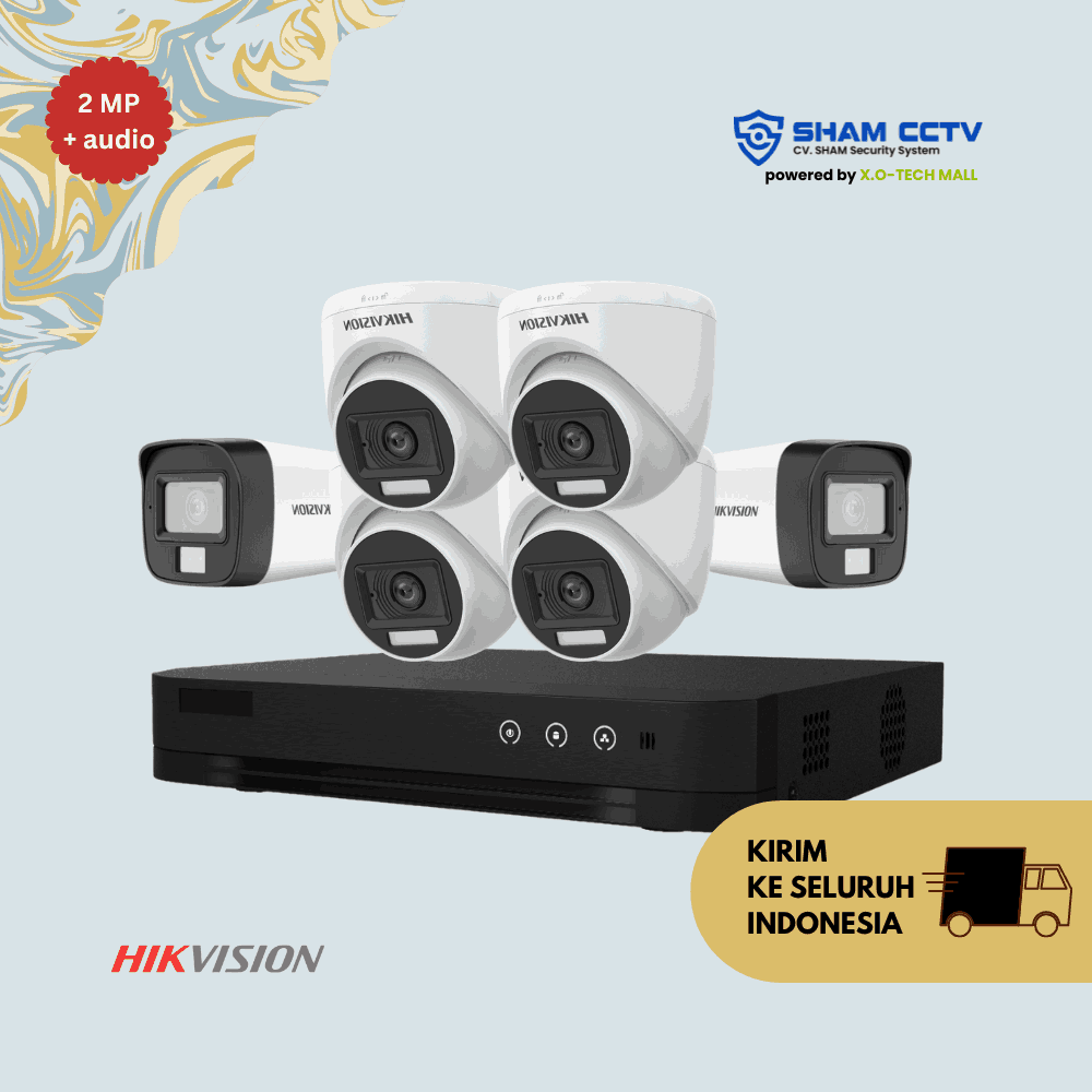 Sistem pengawasan profesional dengan 6 kamera Hikvision 2 Megapixel berfitur audio built-in dan infrared night vision. Ideal untuk rumah besar, kantor, toko, sekolah, atau gudang yang memerlukan pengawasan 24 jam dengan hasil video tajam dan suara jernih.