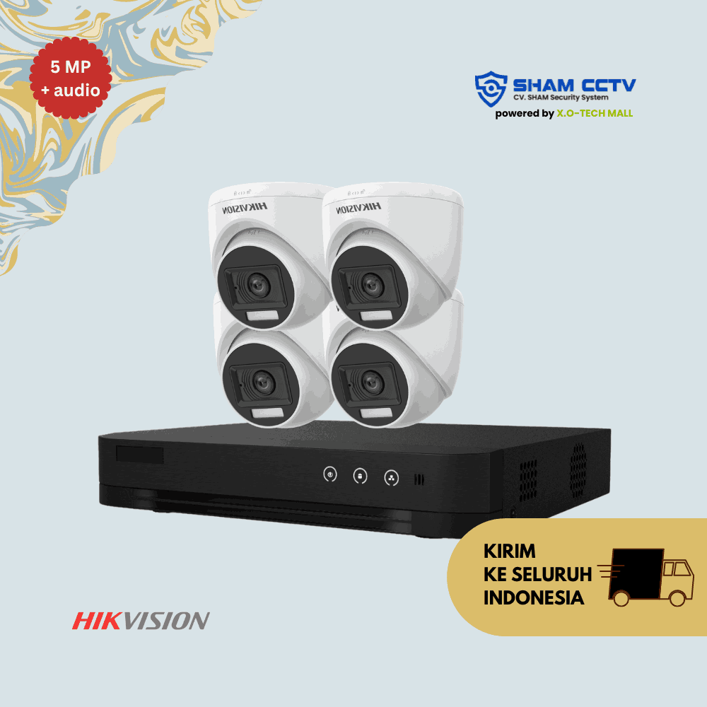 - 4x Kamera Hikvision 5MP Audio – resolusi Ultra HD 5 Megapixel dengan mikrofon internal