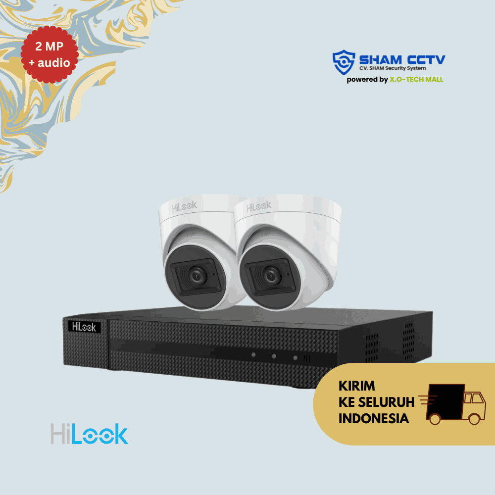 Sistem pengawasan praktis dengan 2 kamera Hilook 2 Megapixel berteknologi audio bawaan dan infrared night vision untuk hasil video jernih dan suara jelas siang maupun malam. Cocok untuk kebutuhan rumah, toko, atau kantor kecil dengan instalasi mudah dan kualitas rekaman profesional.