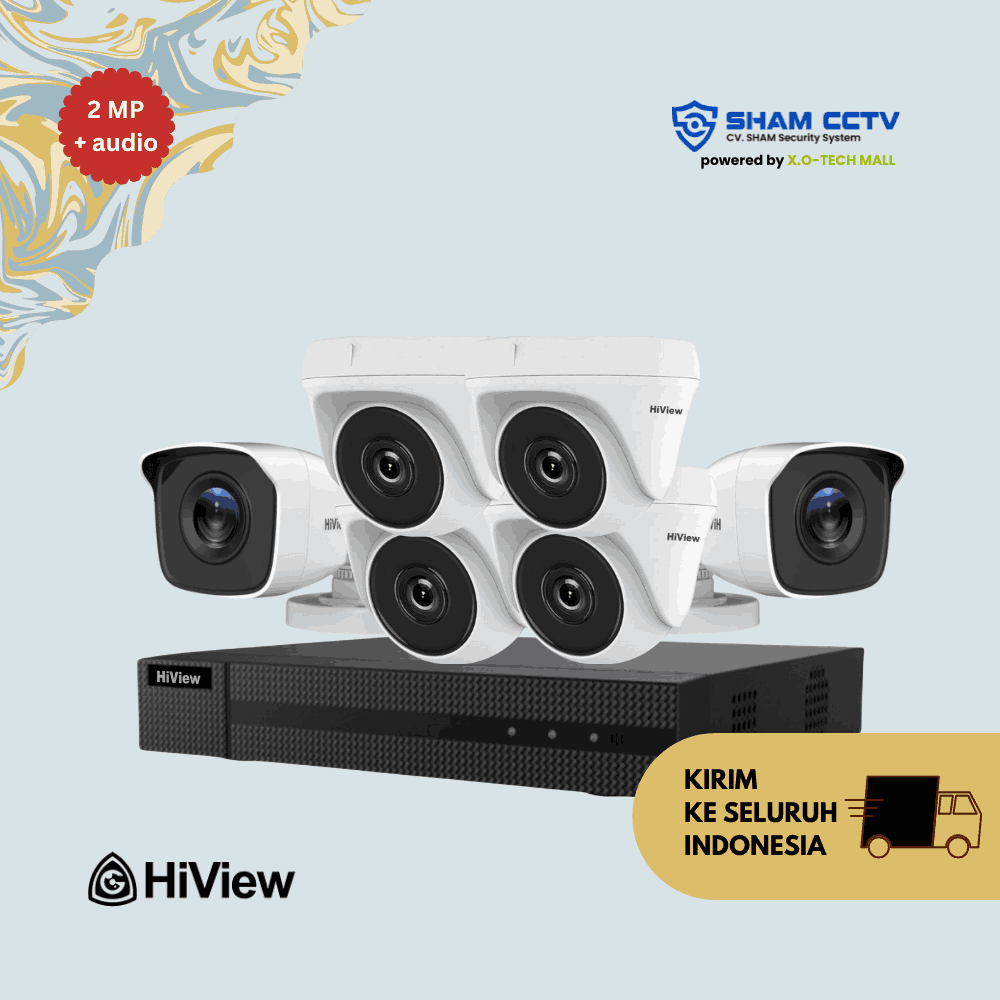 Paket CCTV lengkap berisi 6 kamera Hiview 2 Megapixel Audio