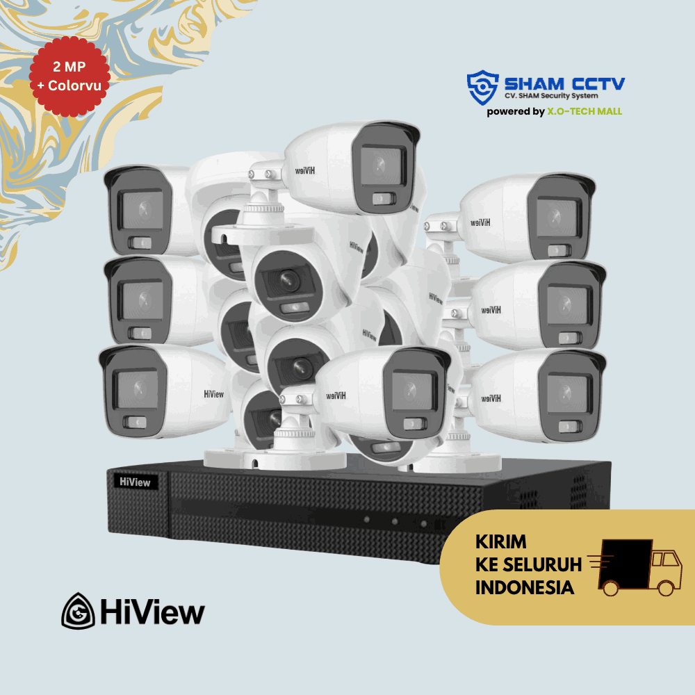 • 16x Kamera I/O Hiview 2MP ColorVu – full color 24/7 dengan LED super terang