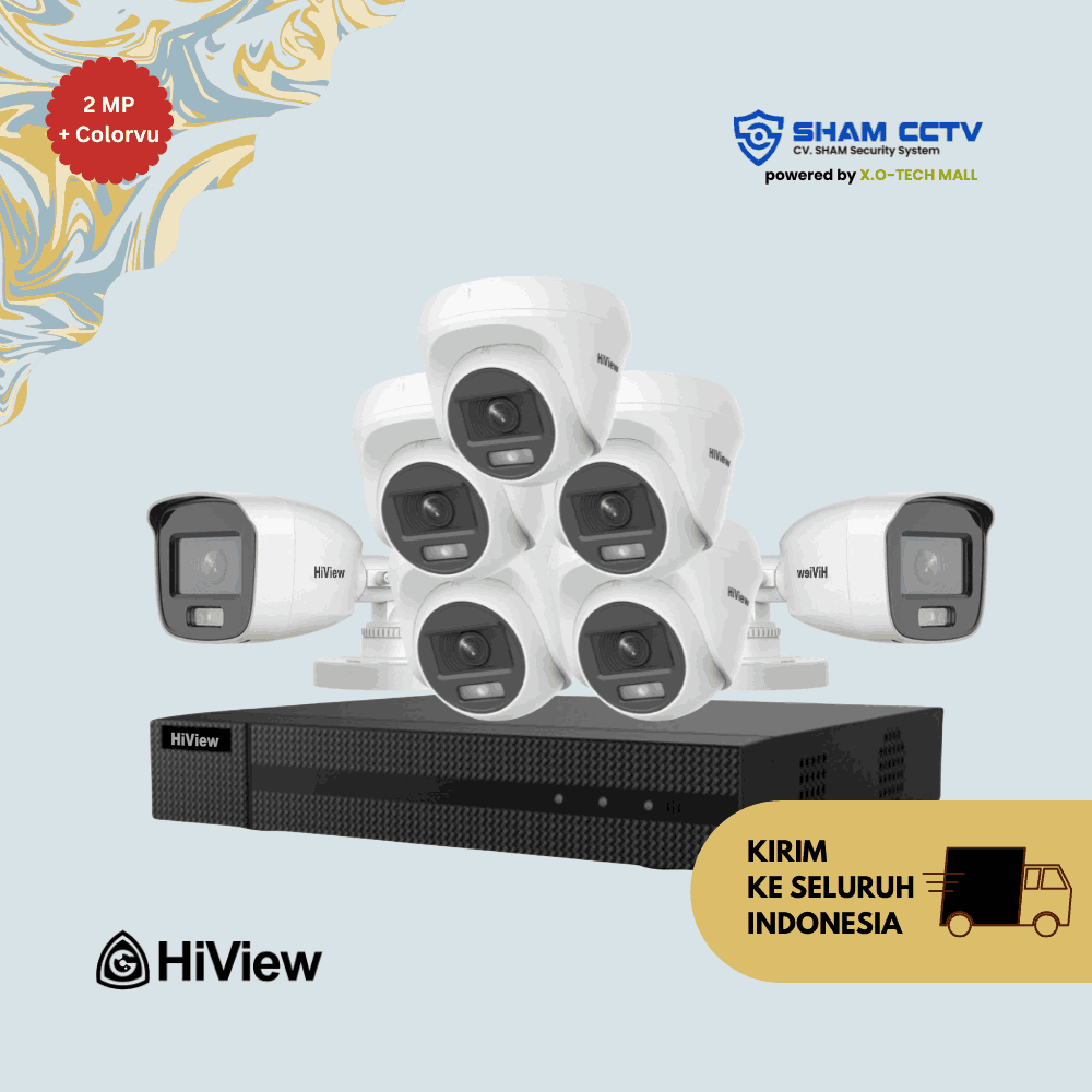 - 7x Kamera I/O Hiview 2MP ColorVu – full color 24/7, sangat terang di malam hari